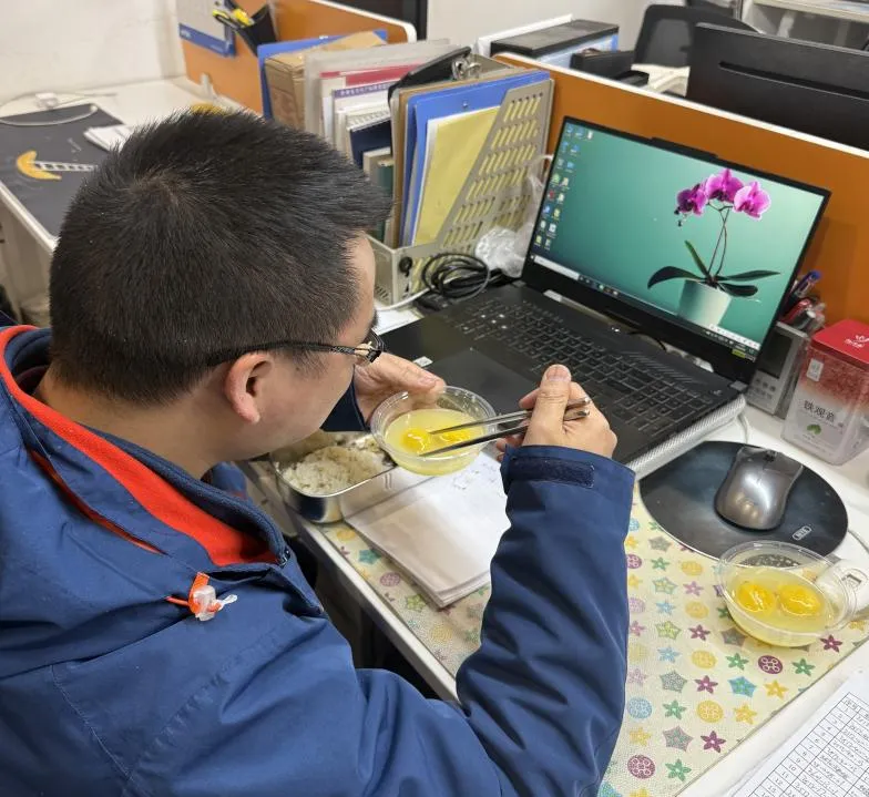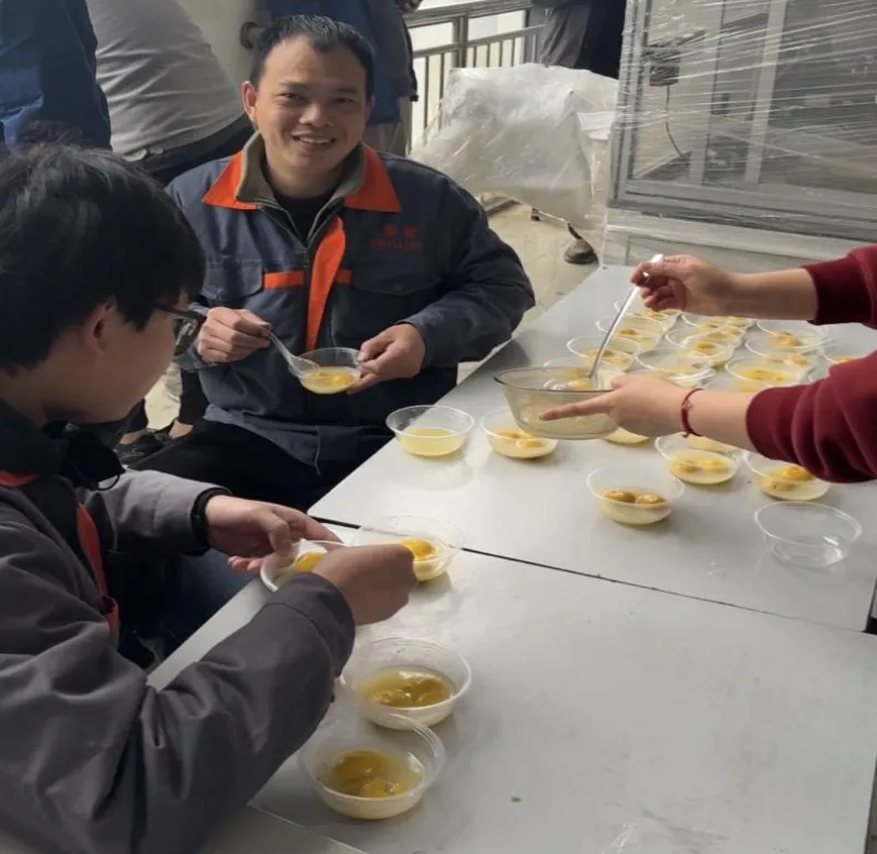 أثناء الغداء، استمتع الجميع بهذه الحلاوة الدافئة في محطات العمل الخاصة بهم وطوال ورشة العمل. كان كل تانج يوان يحمل نعمة، وفي الدفء البخاري، شعر الجميع براحة عائلة شويريوي.